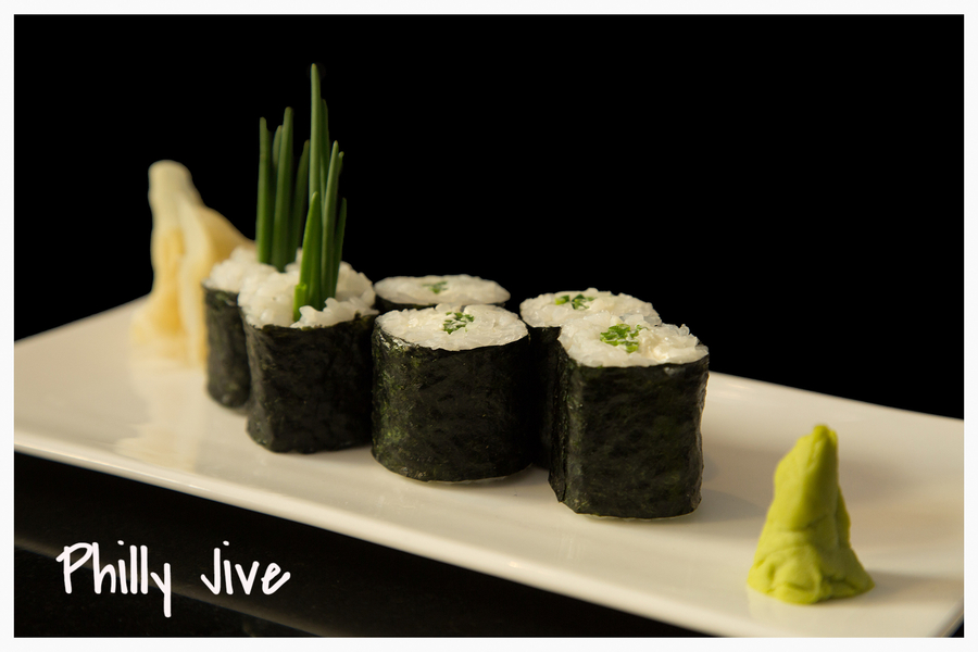 gebackener seelachs, salat mit fritierter paprika und frischkäse