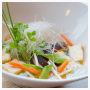 Glasnudeln, Tofu, Koriander, Lauch, Sojasproßen