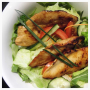 Lachs gebraten auf frischem Gemüse