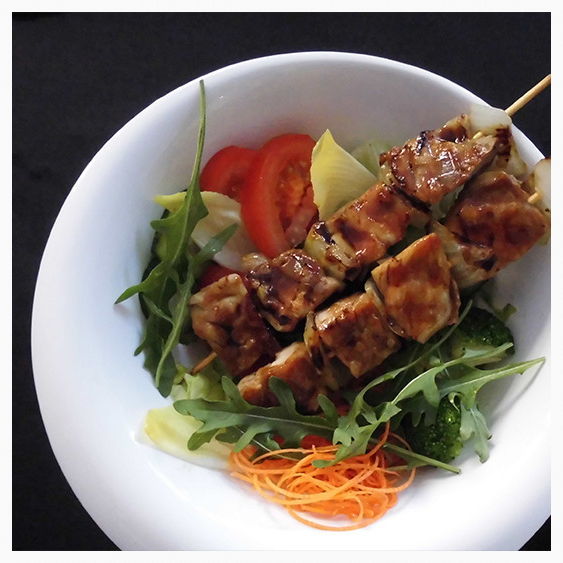 Yakitori auf Salat